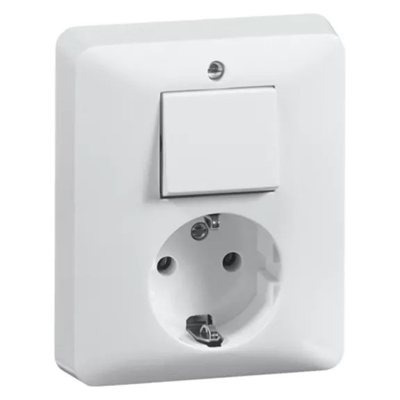 Standard-Kombisteckdose mit Erde, 2-polig, Universalschalter, halbaufliegend, living white