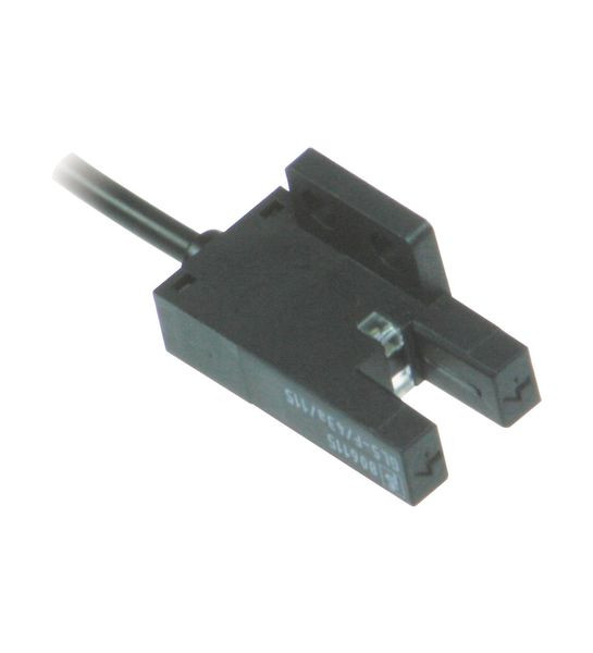 Miniatur-Gabellichtschranke für Kleinteileerkennung, F-Bauform, Gabelweite 5 mm, Infrarotlicht, PNP-Ausgänge, Festkabel, Miniatur-Bauform, Optimiert für Kleinteileerkennung, Hohe Schaltfrequenz, Einfache und schnelle Montage, Gut sichtbare Funktionsanzeige