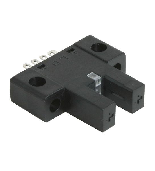 Miniatur-Gabellichtschranke für Kleinteileerkennung, U-Bauform, Gabelweite 5 mm, Infrarotlicht, NPN-Ausgänge, Flachstecker, Miniatur-Bauform, Optimiert für Kleinteileerkennung, Hohe Schaltfrequenz, Einfache und schnelle Montage, Gut sichtbare Funktionsanzeige