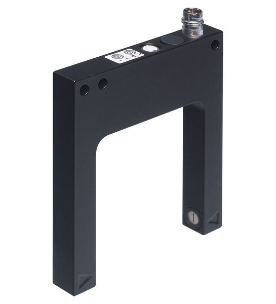 Gabellichtschranke, Zink-Druckgussgehäuse, Gabelweite 50 mm, Infrarotlicht, Hell-/Dunkelschaltung, Empfindlichkeitseinsteller, DC-Version, PNP-Ausgang, Stecker M8 3-polig, Optimiert für Kleinteileerkennung, Hohe Schaltfrequenz, Mehrfachanordnung möglich, keine gegenseitige Beeinflussung, Empfindlichkeitseinsteller und Hell-/Dunkelumschalter serienmäßig, Infrarotlicht