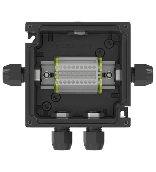 Kohlenstoffangereicherter antistatischer glasfaserverstärkter Polyester, Montage in Zone 1, Zone 2, Zone 21 und Zone 22, Ex-e- und Ex-tb-zertifiziert, 129 mm x 129 mm x 85 mm, Modernes Design mit hoher Schlagfestigkeit, Geringer Installationsaufwand durch leicht zugängliche Befestigungspunkte, Einfaches Abnehmen des Deckels ohne Beschädigung durch mehrere Öffnungspunkte, Oberseite Blindverschraubung Polyamid, 1x M20