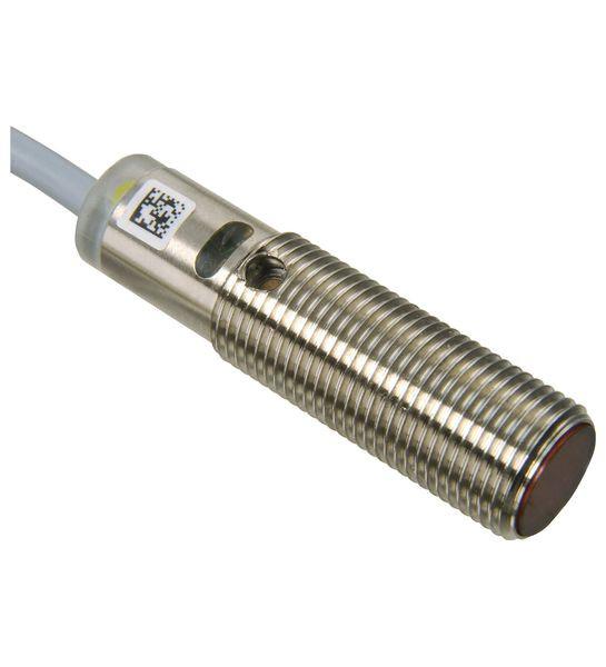Reflexionslichttaster energetisch, Gewindebauform M12, Metallgehäuse, Lichtaustritt frontal, Tastweite 300 mm, Rotlicht, Hell-/Dunkelschaltung, 1 PNP-Ausgang, Festkabel, Robustes M12 Gewindegehäuse, Geringer Platzbedarf, Hell-/dunkelschaltend verdrahtungsprogrammierbar, Schutzart IP67