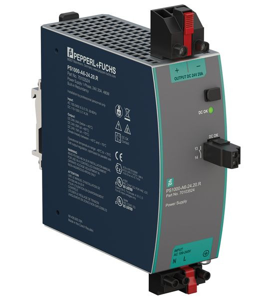 Weitbereichseingang 100 V AC bis 240 V AC, Ausgang 24 V DC, 20 A, 480 W, 1-phasig, Gehäusebreite 48 mm, Integrierter Entkopplungs-Mosfet für 1+1- und N+1-Redundanz, Wirkungsgrad bis zu 95,2 %, Minimaler Einschaltstromstoß, Relaiskontakt DC OK, Stromaufteilung für Parallelbetrieb, Geeignet für die Montage in Zone 2/Div. 2, Gerätetyp: Gerät für Hutschienenmontage, Funktion: Redundanz, Bemessungsspannung: 24 V DC, Spannungsbereich: 23,8 ... 25,2 V DC