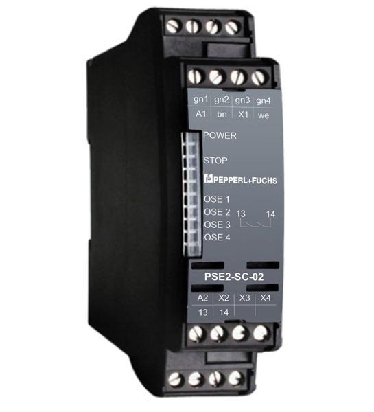 Sicherheitsschaltgerät, Zur Auswertung der Sicherheits-Lichtschranken PSE4-SL, Sicherheitskategorie 3 nach EN61496-1, 24 V DC Versorgungsspannung, 1 sicherer Ausgangskontakt, Performance-Level PLd (EN13849-1) erreichbar, Bestandteil des PSE4-Baukastens, Kanalzahl: 4-kanalig, Performance Level (PL): PL d, Kategorie: Kat. 3, Betriebsspannung: 24 V DC +20/-10 %