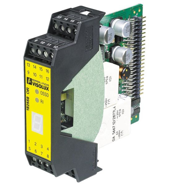 OSSD-R/Supply-Modul, Sicherheitsausgänge OSSD, externe Zustandsanzeigen OSSD, Anlauf-/Wiederanlaufsperre, Wählbare Betriebsarten mittels DIP-Schalter, Relaismonitor, Schraubklemmen oder Federzugklemmen, Sicherheits-Integritätslevel (SIL): SIL 3, Performance Level (PL): PL e, Kategorie: Kat. 4, Betriebsspannung: 24 V DC ± 20 % , erfolgt über SB4 Housing