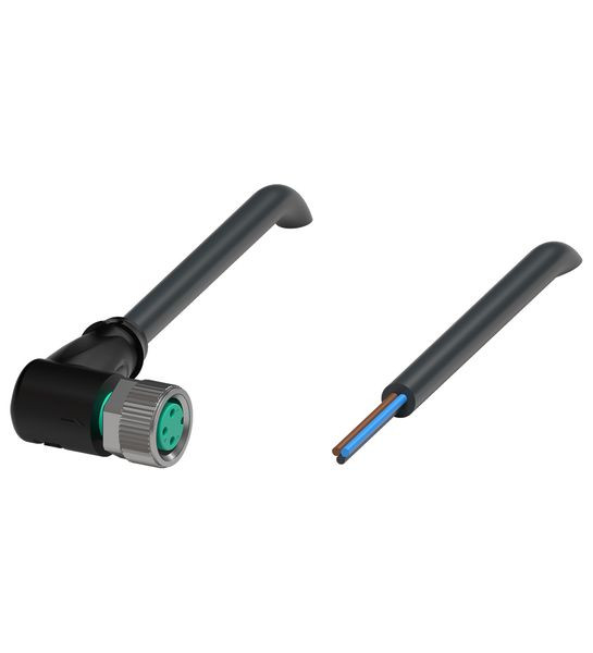 Kabeldose M8 gewinkelt A-kodiert, 3-polig, PUR-Kabel schwarz, UL-zugelassen, schleppkettentauglich, torsionsgeeignet