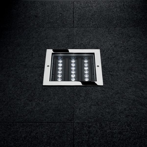 Bodeneinbauleuchte für den Innen- und Außenbereich, bestehend aus: Gehäuse aus eloxiertem und schwarz lackiertem Aluminiumdruckguss. Diffusor aus extrahellem Sicherheitsflachglas mit einer Stärke von 12 mm. Für eine bessere Kontrolle der Temperatur ist der Lampenraum vom Elektronikraum getrennt. Silikondichtung. Ring aus Edelstahlfeinguss. Kabelanschlusssystem in wasserdichter Ausführung, WATER STOP. Äußere Schrauben aus Edelstahl. Einbautopf aus Technopolymer, dient dazu, den Wasserablauf mit Hilfe des WATER DRAIN-Systems zu gewährleisten. Der Einbautopf ist außerdem mit einem abnehmbaren Deckel mit zwei Nivellierblasen ausgestattet, der die Installation erleichtert. Der Einbautopf für die Leuchte muss separat bestellt werden. Die stranggepressten Profile, auf denen die LED installiert sind, können unabhängig voneinander verstellt werden. Die Modelle STEEL SQUARE 28 LED I sind mit engstrahlenden Linsen mit einer 8 Grad-Öffnung ausgestattet.