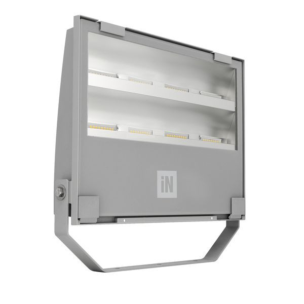 LED-Scheinwerfer für den Außen- und Innenbereich, bestehend aus: Mit Polymerpulverlack körnig grau lackiertes Aluminiumdruckgussgehäuse nach vorheriger chemischer Oberflächenbehandlung. Diffusor aus extraklarem temperiertem Sicherheits-Flachglas. Hochleistungsreflektoren aus metallisiertem Reinstaluminium 99,99%, hochglänzend, oxidations- und irisierungsfrei. Altersbeständige Silikon-Dichtung. Stopfbuchsen M20x1.5 für Kabel D= 10-14 mm. LED-Module und Reflektoren, die speziell für Umgebungen entwickelt wurden, in denen Lichtverteilungen mit hoher Asymmetrie realisiert werden müssen. Außenschrauben aus Edelstahl. Aluminium-Clip mit Edelstahlfeder, unverlierbar. Stahlbügel, lackiert mit Polyesterpulverlack nach Kataphorese-Beschichtung.