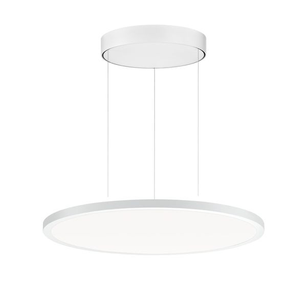 Pendelleuchte FL ROUND+ 555 mit Hochleistungs-LED. Leuchtenleistung 49W. Fortschrittliche Flächenleuchte schafft beispiellose Symbiose aus Allgemein- und Arbeitsplatzbeleuchtung. Besonders filigranes und innovatives Design. Geprägt durch klare und runde Formensprache entsteht eine harmonische Integration ins Deckenbild und Umgebung. Besonders edel und architekturunterstützend. Made (designt, entwickelt und gebaut) in Germany. Konzipiert für vielfältige Anwendungs- und Planungsvariationen. Leuchtenrahmen aus Aluminiumdruckguss mit einer Höhe von nur 14 mm. Zukunftssicheres und wartungsfreundliches Design mit integrierter Light-Engine Technologie und austauschbarem Konverter. Erfüllung der Öko-Design-Richtlinie VO EU 2019/2020. Förderfähig (z.B. BEG) für die Sanierung von Nichtwohngebäuden. Light-Engine inkl. elektrischer Steckverbindung für einen schnellen und wartungsfreundlichen Austausch. Opale Lichtoptik mit LED-SideLight-Einspeisung. Integrierter hochtransmittierender Lichtleiter aus PMMA. Direkt strahlend. Homogene Leuchtdichteverteilung über die gesamte Lichtaustrittsfläche (LED Sidelight-Technologie). Diffuse Lichtwirkung schafft ein einheitliches Beleuchtungsniveau. Gleichmäßige Lichtstreuung unterstützt die visuelle Wahrnehmung von horizontalen und vertikalen Raum- und Deckenflächen.