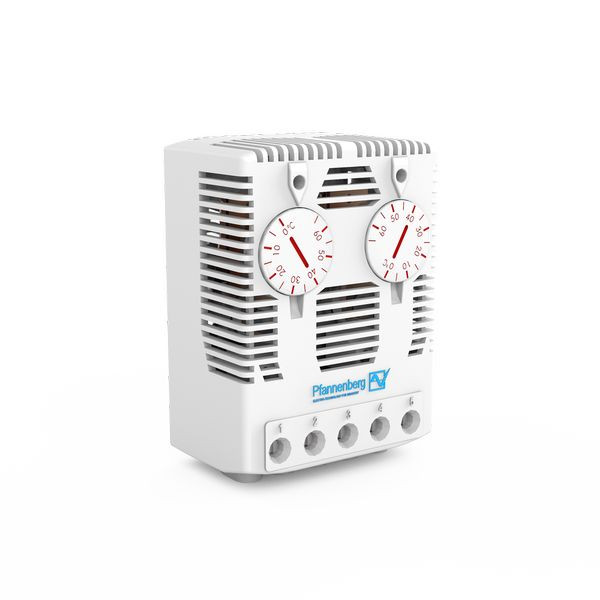 Thermostate werden als Temperaturregler und damit zur Steuerung von Filterlüftern oder Schaltschrank-Heizungen verwendet. Sie sind als Öffner/Schließer und Wechsler ausgeführt. In Kombination mit Schaltschrank-Heizungen können sie neben der Temperaturregelung, insbesondere bei Outdoor-Anwendungen, sicherstellen, dass der Schaltschrank 'künstlich' entfeuchtet wird. Das bedeutet, dass die Temperatur oberhalb des Taupunktes gehalten wird, damit kein Wasser aus der Luft ausfällt und es zu Kurzschlüssen aufgrund von Kondensatbildung kommen kann. Die Kombination mit Filterlüftern bietet zusätzliche Energie-, Material- und Zeiteinsparungen und damit eine bessere Umweltbilanz und mehr Sicherheit im Produktionsprozess durch reduzierten Energieverbrauch und Verbesserung des Wirkungsgrades der Filterlüfter. Die Reihe der Zwillings-Thermostate vereint 2 Thermostate in allen Kombinationen für komplexe Schaltaufgaben.