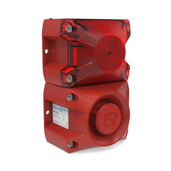 Kompakter Blitzschallgeber in rot mit roter Haube