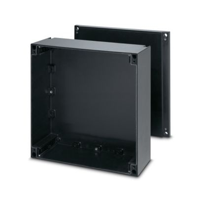 Leergehäuse, mit zwei Verdrahtungsebenen, Material: Polyester glasfaserverstärkt, mit Graphitzusatz, schwarz, 360 mm x 360 mm x 145 mm, Verschlussart: geschraubter Deckel