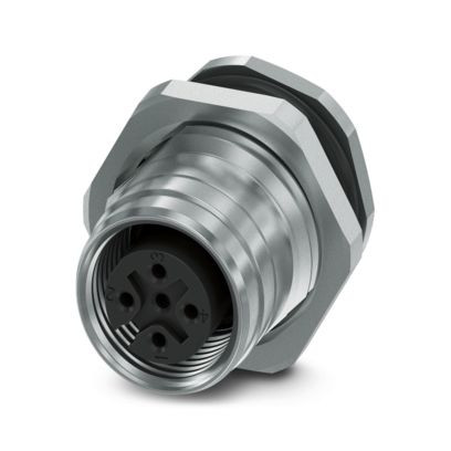 Gerätesteckverbinder Hinterwand, 5-polig, Buchse, gerade, M12-Push-Pull-Außenverriegelung, A-Kodierung, Wellenlöten, dieser Artikel ist voraussichtlich ab 2026-Q1 nach RoHS II ohne Ausnahme 6c (Pb < 0,1 %) bleifrei, auf Anfrage ist eine bleifreie Alternative vorab möglich