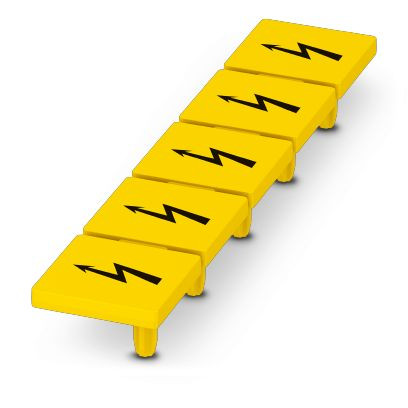 Warnschild, gelb/schwarz, beschriftet: Blitzpfeil, Montageart: stecken, für Klemmenbreite: 12,2 mm