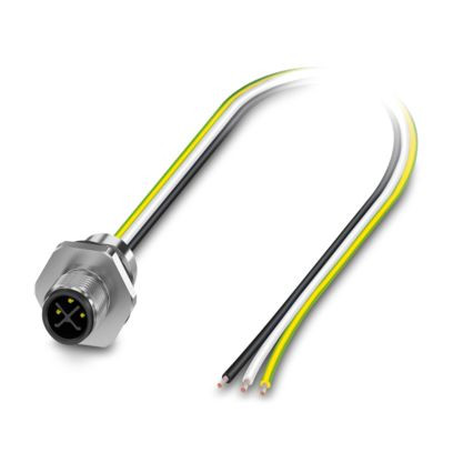 Gerätesteckverbinder Vorderwand, Leistung, 3-polig, Einbaustecker, gerade, M12-Standard, S-Kodierung, auf freies Leitungsende, Einzellitzen, Kabellänge: 0,5 m, 2,50 mm², PEX-Litze