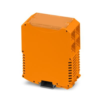 Tragschienengehäuse, Komplettgehäuse mit Metallfußriegel, hohe Bauform, mit Lüftungsschlitzen, Breite: 45,2 mm, Höhe: 99 mm, Tiefe: 113,65 mm, Farbe: orange (ähnlich RAL 2003), Querverbindung: Tragschienen-Busverbinder (optional), Polzahl Querverbinder: 5