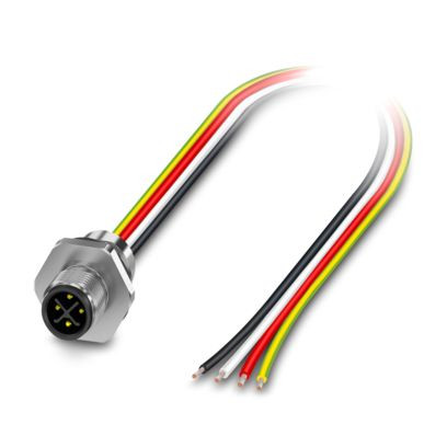 Gerätesteckverbinder Vorderwand, Leistung, 4-polig, Stift, gerade, M12-Standard, S-Kodierung, auf freies Leitungsende, Einzellitzen, Kabellänge: 1 m, 2,50 mm², PEX-Litze