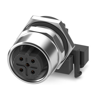 Gerätesteckverbinder Hinterwand, 5-polig, Buchse, gewinkelt, M12, B-Kodierung, Wellenlöten