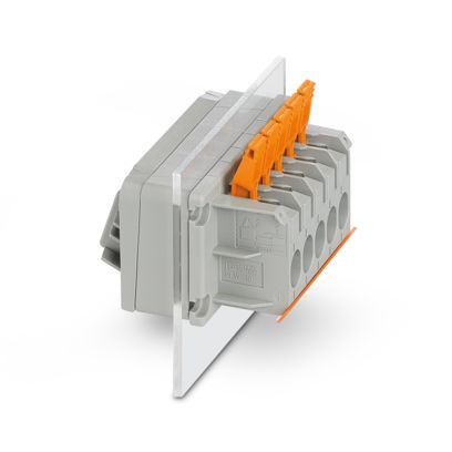 Durchführungsklemme, Anschlussart: Push-Lock-Anschluss, Push-in-Federanschluss, Polzahl: 4, Belastungsstrom: 41 A, Querschnitt: 2,5 mm² - 16 mm², Anschlussrichtung des Leiters zur Steckrichtung: 0 °, Breite: 64,4 mm, Farbe: grau