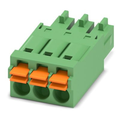 Leiterplattenstecker, Nennquerschnitt: 1,5 mm², Farbe: grün, Nennstrom: 8 A, Bemessungsspannung (III/2): 160 V, Kontaktoberfläche: Sn, Kontaktart: Buchse, Anzahl der Potenziale: 3, Anzahl der Reihen: 1, Polzahl: 3, Anzahl der Anschlüsse: 3, Artikelfamilie: FMC 1,5/..-ST, Rastermaß: 3,5 mm, Anschlussart: Push-in-Federanschluss, Anschlussrichtung Leiter/Platine: 0 °, Stecksystem: COMBICON FMC 1,5 - MCDN 1,5, Verriegelung: ohne, Befestigungsart: ohne, Verpackungsart: verpackt im Karton