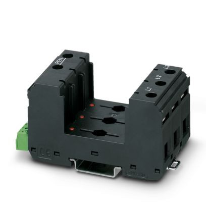 Basiselement für Typ 2-Ableiter der Produktreihe VALVETRAB MS, mit Fernmeldekontakt. Ausführung für 3-phasige Stromversorgungen mit PEN-Leiter.