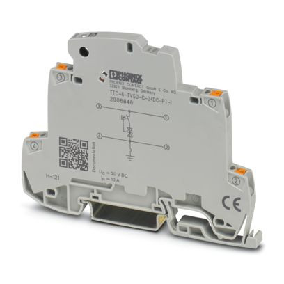 Überspannungs-Feinschutz mit integrierter Statusanzeige für eine Signalader mit geerdetem Bezugspotenzial. In sicherheitsgerichteten Kreisen bis SIL 3 einsetzbar.