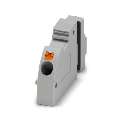 Durchführungsklemme, Anschlussart: Push-in-Federanschluss, Flachsteckanschluss, Polzahl: 1, Belastungsstrom: 18 A, Querschnitt: 0,2 mm² - 4 mm², Anschlussrichtung des Leiters zur Steckrichtung: 45 °, Breite: 8,1 mm, Farbe: grau