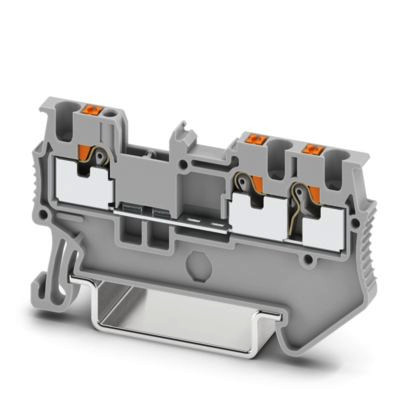 Durchgangsklemme, Nennspannung: 500 V, Nennstrom: 17,5 A, Anzahl der Anschlüsse: 3, Anschlussart: Push-in-Anschluss, Bemessungsquerschnitt: 1,5 mm², 1. Etage, Querschnitt: 0,14 mm² - 1,5 mm², Montageart: NS 35/7,5, NS 35/15, Farbe: grau