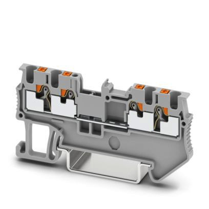 Durchgangsklemme, Nennspannung: 500 V, Nennstrom: 17,5 A, Anzahl der Anschlüsse: 4, Anschlussart: Push-in-Anschluss, Bemessungsquerschnitt: 1,5 mm², Querschnitt: 0,14 mm² - 1,5 mm², Montageart: NS 35/7,5, NS 35/15, Farbe: grau
