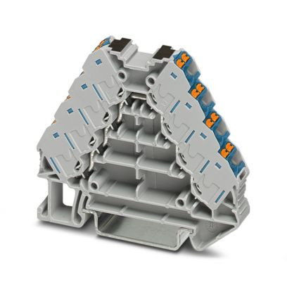 Potenzialverteiler, Nennspannung: 250 V, Nennstrom: 17,5 A, Anschlussart: Push-in-Anschluss, 1., 2., 3. und 4. Etage, Bemessungsquerschnitt: 1,5 mm², Querschnitt: 0,14 mm² - 2,5 mm², Montage: NS 35/7,5, NS 35/15, Farbe: grau, Farbe Anschlusselemente: blau