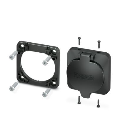 CHARX connect basic, Typ 2, Befestigungsrahmen, Zubehör, Vorderwandmontage, Gehäuse: schwarz, zur Anbringung an Infrastruktur-Ladesteckdosen, Ohne Logo, IEC 62196-2