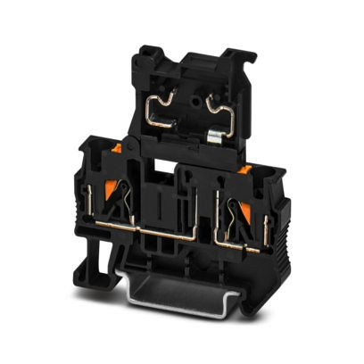 Sicherungsreihenklemme, Art der Sicherung: Glas / Keramik / ..., Sicherungstyp: G / 5 x 20, Nennspannung: 500 V, Nennstrom: 6,3 A, Polzahl: 1, Anschlussart: Push-in-Anschluss, Bemessungsquerschnitt: 4 mm², Querschnitt: 0,2 mm²- 6 mm², Montageart: NS 35/7,5, NS 35/15, Farbe: schwarz