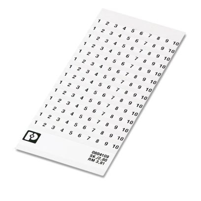 Kennzeichnungskarte, selbstklebend, längs bedruckt mit den fortlaufenden Zahlen: 11 ... 20, 10-teiliger Kennzeichnungsstreifen mit 14 gleichen Dekaden, weiß, für Klemmenbreite: 3,81 mm