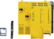 PSSu, Kopfmodul, dezentrales System PSSuniversal I/O, Failsafe undStandard, PL e, SIL CL 3, 2 RJ45 Ports, SafetyNET p RTFN, SD-Karte, fürBahnanwendungen.
