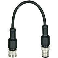 Kabel, Adapter, IP68, M12 Buchsenstecker, schwarz, gerade, 8-polig, A-codiert auf M12 Stiftstecker, schwarz, gewinkelt, 5-polig, A-codiert,PUR, 0,1 m, 5× 0,25 mm², schwarz, mit Abschirmung (Drahtgeflecht), zumAnschluss eines PSENcode-Sensors (codierter Sicherheitsschalter) anPSS67 und PDP67.