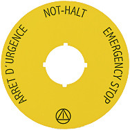 PITestop, Unterlegscheibe mit Not-Halt Schriftzug, in den Sprachenenglisch, französisch, deutsch, passend für alle Taster außer PIT es2und PIT es5.