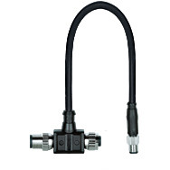 Kabel, Y-Adapter mit T-Steckverbinder, IP67, M12 Stiftstecker (X2,Auswertegerät), 8-polig, A-codiert auf M12 Buchsenstecker (X1, Sensor),8-polig, A-codiert und M8 Buchsenstecker (X3, Meldeausgang/Lock_Unlock),schwarz, gerade, 4-polig, A-codiert, PUR, 0,25 m, 4× 0,25 mm², schwarz,zur Auskopplung von Hilfssignalen beim Anschluss von PSENcode undPSENslock.