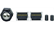 Sicheres Schutztürsystem, 2. Generation, Zubehör: Steckersatz inFederkraftausführung mit Überwurfmutter und Zugentlastung fürKabelverschraubung. (Ersatzteil).