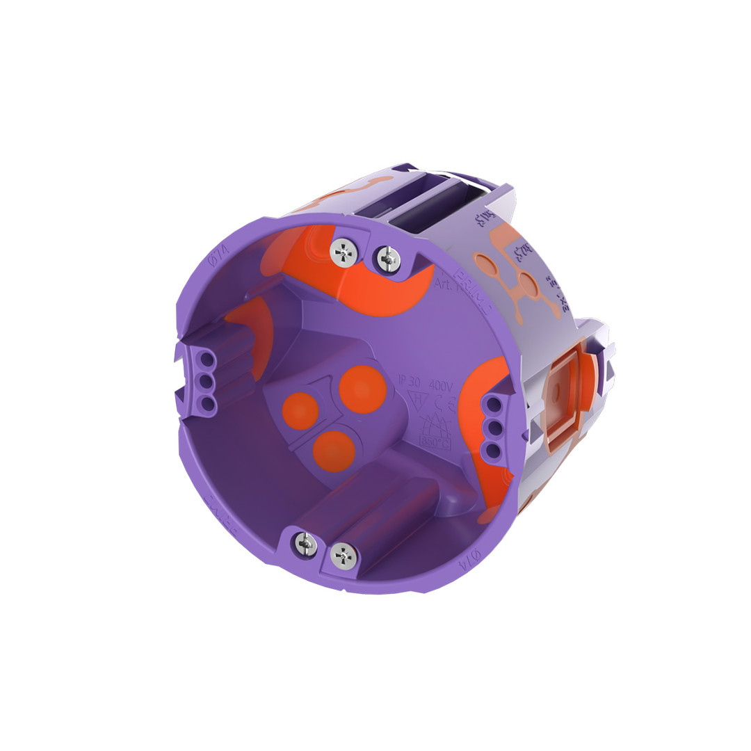 Schallschutz, halogenfrei und luftdicht in einer Dose! Durch ihre Tiefe von 49 mm eignet sich die Qnect Hohlwanddose für Trockenbau ideal für enge Wandaufbauten. Mit einem Durchmesser von 74 mm bietet die Gerätedose außerdem deutlich mehr Klemmraum als herkömmliche Installationsdosen. Bei Mehrfachkombinationen können die Schalterdosen in Holzständerwänden oder Rigips dadurch auch im genormten Kombinationsabstand von 71 mm fest miteinander verbunden werden. Die SCS-Verbindungstechnik mit großflächiger Verbindungsmembran inklusive Cable-Plopp-Technik ermöglicht anschließend ein einfaches Durchverdrahten ohne Verbindungsstutzen. Die Qnect Hohlwanddose Schallschutz ist auch mit einer Tiefe von 62 mm erhältlich.