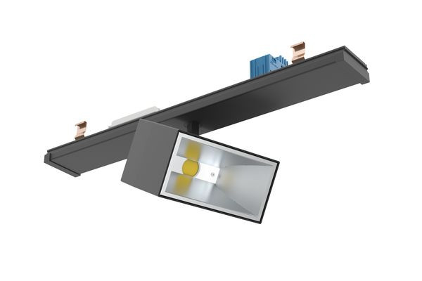 Strahlermodul REY-NX der RIDI LINIA EVO-Produktfamilie. Lichtlenkung durch Reflektor aus , Ausstrahlungscharakteristik symmetrisch, tief-breitstrahlend, Lichtaustritt direkt. Leuchtmittel LED-M eingebaut, Austausch durch Fachkraft möglich. Die Leuchte generiert einen Bemessungslichtstrom von 5150 lm in Lichtfarbe 840, Lichtstrom einstellbar: Nein. Die hohe LED-Lebensdauer von bis zu 95.000 h ermöglicht einen langen Einsatz bei gleichbleibender Beleuchtungsgüte. Hohe Lichtqualität durch eine Farborttoleranz von < 3 SDCM. Aluminium, schwarz, ähnlich RAL 9005, Schutzart IP20, Zulässige Umgebungstemperatur -20 - 25 °C. Einfaches Einclipsen zur elektrischen Kontaktierung und mechanischen Befestigung im systemgebundenem LINIA EVO Tragschienensystem. Mit elektronischem Betriebsgerät On/Off. Austausch durch Fachkraft möglich. Nennspannung 220 - 240 V AC/DC 50 - 60 Hz.