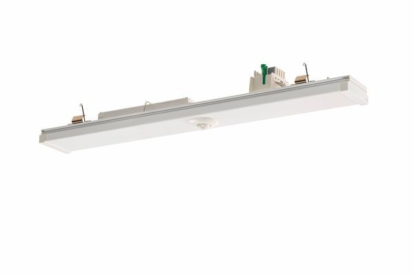 Sensormoduleinsatz mit Slave-Präsenzsensor (On/Off) Geräteträger aus Aluminiumprofil, stranggepresst, verkehrsweiß, ähnlich RAL 9016. Sensor aus Polycarbonat, UV-beständig. Montage: Einfaches Einclipsen zur elektrischen Kontaktierung und mechanischen Befestigung im systemgebundenem RIDI LINIA-Tragschienensystem. Mechanische Codierung zur Vermeidung von Fehlmontage (Verdrehschutz). Nennspannung 230 - 230 V AC 50 - 60 Hz. Elektrischer Adapter zum flexiblen Abgriff der Stromführung in der Tragschiene. Farbliche und optische Codierung zur einfachen Montage. Mit Licht- und Bewegungsmelder. Erfassungsreichweite quer Ø 10 m, Erfassungsfeld 79 m². Schaltimpuls-Ausgang für den Anschluss an einen Master-Präsenzsensor um das Erfassungsfeld zu erweitern. Es können bis zu 8 Slave-Einheiten mit einem Master-Sensor kombiniert werden. Die Moduleinsätze können variabel zwischen den Geräteträgern platziert werden. Module können je nach Aufbau nicht im Verbinderbereich platziert werden. Inklusive Abdecklamellen/Blinds zur Einschränkung des Sensor-Erfassungsfeldes.