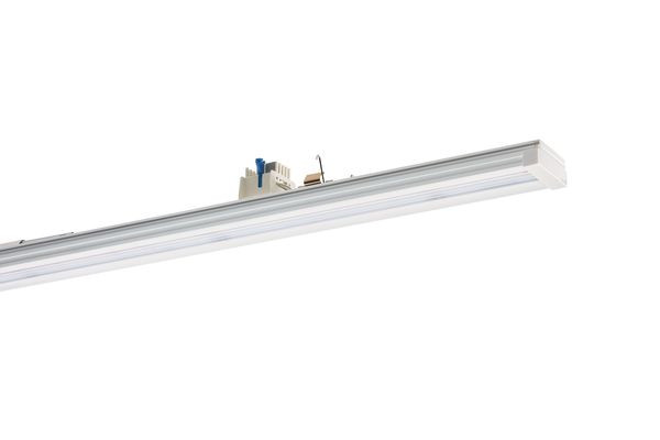Geräteträger VLGFP der RIDI LINIA-Produktfamilie. Lichtlenkung durch Abdeckung längsprismatisch, Ausstrahlungscharakteristik symmetrisch, engstrahlend, Lichtaustritt direkt. Leuchtmittel LED-M eingebaut, Austausch durch Fachkraft möglich. Die Leuchte generiert einen Bemessungslichtstrom von 7900 lm in Lichtfarbe 840. Die hohe LED-Lebensdauer ermöglicht einen langen Einsatz bei gleichbleibender Beleuchtungsgüte. Hohe Lichtqualität durch eine Farborttoleranz von < 3 SDCM. Lichtstrom in Stufen einstellbar von 3600 - 7900 lm. Gehäuse aus Stahl, verkehrsweiß, ähnlich RAL 9016, Schutzart IP54. Einfaches Einclipsen zur elektrischen Kontaktierung und mechanischen Befestigung im systemgebundenem LINIA Tragschienensystem. Mit elektronischem Betriebsgerät xFlex. Austausch durch Fachkraft möglich. Nennspannung 220 - 240 V AC/DC 50 - 60 Hz.