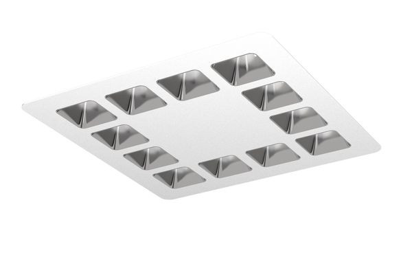 Downlight mit tiefstrahlendem, matten Reflektoreinheiten. Lichtlenkung durch Reflektor, Ausstrahlungscharakteristik symmetrisch, breitstrahlend, Lichtaustritt direkt. Leuchtmittel LED-M eingebaut, Austausch durch Fachkraft möglich. Die Leuchte generiert einen Bemessungslichtstrom von 3820 lm in Lichtfarbe 8TW, Lichtstrom einstellbar: stufenlos. Die hohe LED-Lebensdauer ermöglicht einen langen Einsatz bei gleichbleibender Beleuchtungsgüte. Hohe Lichtqualität durch eine Farborttoleranz von < 3 SDCM. Sichtbares Leuchtengehäuse aus Stahl, verkehrsweiß, ähnlich RAL 9016 pulverbeschichtet, Leuchtenform quadratisch. Schutzart IP20, Nettogewicht 2,000 kg. Montage mit beiliegendem Zubehör. Mit elektronischem Betriebsgerät DALI-2. Austausch durch Fachkraft möglich. Nennspannung 220 - 240 V AC/DC 50 - 60 Hz.