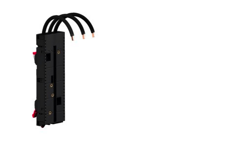 RiLineX Geräteadapter (100 A, 3-polig, inkl. Anschlussleitungen) in Breite 72 mm für 60 mm Sammelschienensysteme. Mit integrierten Einpressmuttern.