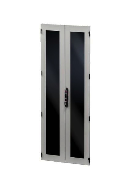 Stahlblech-Sichttür, vertikal geteilt für VX IT, Zum Austausch vorhandener Türen. Mit hinterlegter, Sichtscheibe und 4-Punkt-Stangenverschluss. Für Schrankbreite: 800 mm, Für Schrankhöhe: 2.000 mm