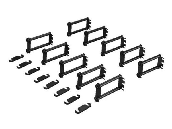 Lieferumfang: Kabelsprossen und Verbindungskämme. DK Kabelsprossen, 19"-Befestigung, Zur horizontalen Kabelführung innerhalb der Verteilerebene, 1 HE, Stahlblech, RAL 9005