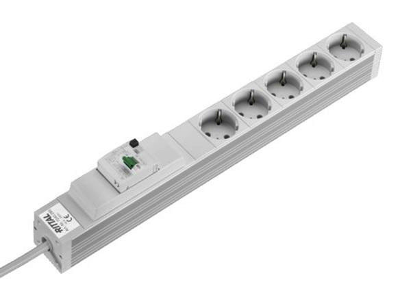 DK Steckdosenleiste, mit FI-Schalter, Schuko (Typ F, CEE 7/3), 5-fach, 230 V, 16 A, LHT: 482,6x44x44 mm, Anschlusskabel mit Aderendhülsen, Länge: 2 m