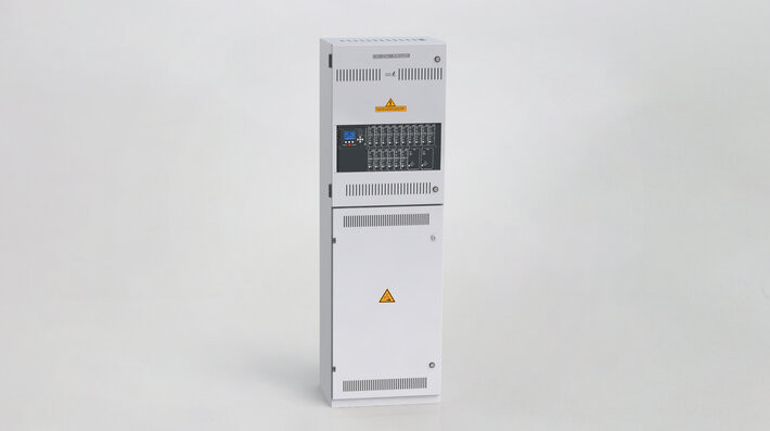 Die Systeme der midiControl plus sind batteriegestützte zentrale Stromversorgungssysteme nach DIN EN 50171, die zur Versorgung und Überwachung von Rettungs- und Sicherheitsleuchten konzipiert sind. Bis zu 32 Stk. Stromkreise pro System ermöglichen die Versorgung und zusatzleitungslose Überwachung von bis zu 640 Leuchten in Mischbetriebstechnik.Eine Anzeige- und Bedieneinheit, bestehend aus LC-Display, Tastenfeld und Status LEDs, gibt Information über den aktuellen Systemzustand und ermöglicht Konfigurationen direkt am System.Optional ist ein Touchdisplay lieferbar.Das Prüfbuch erfasst und speichert Daten über einen Zeitraum >5 Jahre. Über ein integriertes (patentiertes) Web-Interface lassen sich alle Systeme visualisieren und konfigurieren.Die Vernetzung von weiteren Systemen bietet die Möglichkeit zur Erweiterung des Systems sowie der Anpassung an individuelle Anforderungen, wie z.B. Installationsaufwand.midiControl plusmax. 32 Stk. Stromkreise, 5700 W/1h, max. 640 LeuchtenDie midiControl plus ist ein zentrales Stromversorgungssystem nach DIN EN 50171 bis maximal 5700 W/1h und servicefreundlicher modularer Einschubtechnik.