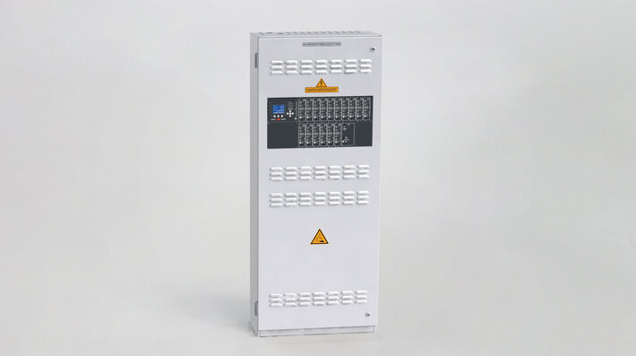 Die Systeme der miniControl XL plus sind batteriegestützte zentrale Stromversorgungssysteme nach DIN EN 50171, die zur Versorgung und Überwachung von Rettungs- und Sicherheitsleuchten konzipiert sind. Bis zu 32 Stk. Stromkreise pro System ermöglichen die Versorgung und zusatzleitungslose Überwachung von bis zu 640 Leuchten in Mischbetriebstechnik.Eine Anzeige- und Bedieneinheit, bestehend aus LC-Display, Tastenfeld und Status LEDs, gibt Information über den aktuellen Systemzustand und ermöglicht Konfigurationen direkt am System.Optional ist ein Touchdisplay lieferbar.Das Prüfbuch erfasst und speichert Daten über einen Zeitraum >5 Jahre. Über ein integriertes (patentiertes) Web-Interface lassen sich alle Systeme visualisieren und konfigurieren.Die Vernetzung von weiteren Systemen bietet die Möglichkeit zur Erweiterung des Systems sowie der Anpassung an individuelle Anforderungen, wie z.B. Installationsaufwand.miniControl XL plusmax. 32 Stk. Stromkreise, 2575 W/1h, max. 640 LeuchtenDie miniControl XL plus ist ein zentrales Stromversorgungssystem nach DIN EN 50171 bis maximal 2575 W/1h und servicefreundlicher modularer Einschubtechnik.