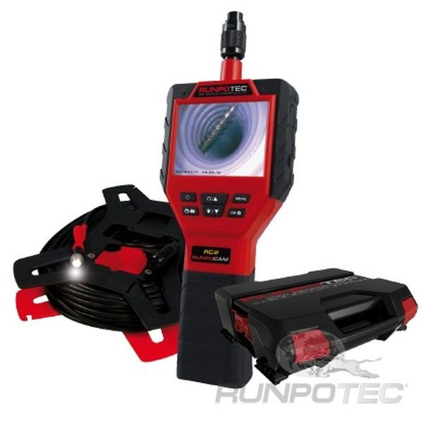 Lieferumfang: 1 x RC2 Inspektionskamera mit Kabel 50 m inkl. Spule, 1 x RUNPOTEC Systemkoffer, 1 x RG 7 RUNPOGLEITER mit Frontgewinde, 1 x Systemgleiter, 1 x LED-Akku-Hochleistungslampe 320 Lumen, 1 x Micro Memory Card 8 GB, 1 x Magnet Fang-Set, 1 x Verbindungsgewinde Set RTG Ø 6 mm (3-teilig), 1 x Fanghaken, 1 x Aufsatz biegsam 12 cm, 1 x USB-Kabel 1,5 m, 1 x USB-Ladestecker 230 V, 1 x Gewindeaufsatz RC2